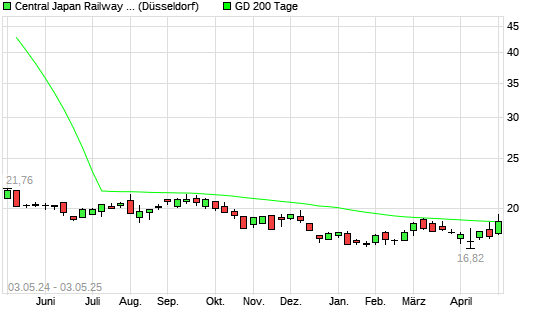 Mit dem Anstieg auf 19,45 EUR hat die Central Japan Railway-Aktie am 02.05.2025 die 200-Tage-Linie nach oben gekreuzt.