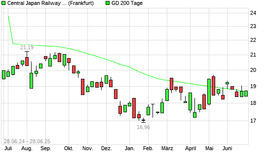 Mit dem Anstieg auf 18,71 EUR hat die Central Japan Railway-Aktie am 27.06.2025 die 200-Tage-Linie nach oben gekreuzt.