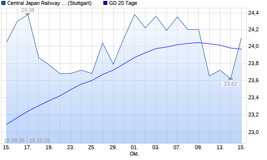 Mit dem Rücksetzer auf 23,78 EUR hat die Central Japan Railway-Aktie am 14.10.2025 die 20-Tage-Linie nach unten gekreuzt.