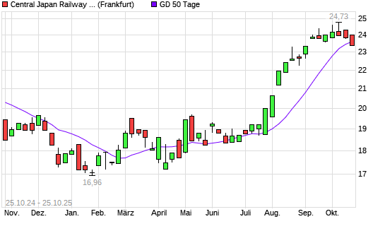 Mit dem Rücksetzer auf 23,40 EUR hat die Central Japan Railway-Aktie am 24.10.2025 die 50-Tage-Linie nach unten gekreuzt.