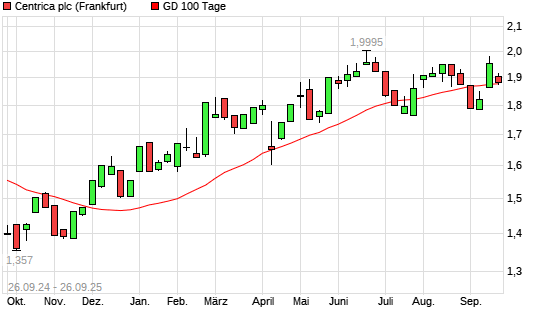 Mit dem Anstieg auf 1,91 EUR hat die Centrica-Aktie am 25.09.2025 die 100-Tage-Linie nach oben gekreuzt.