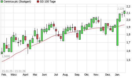 Mit dem Anstieg auf 2,06 EUR hat die Centrica-Aktie am 20.01.2026 die 100-Tage-Linie nach oben gekreuzt.