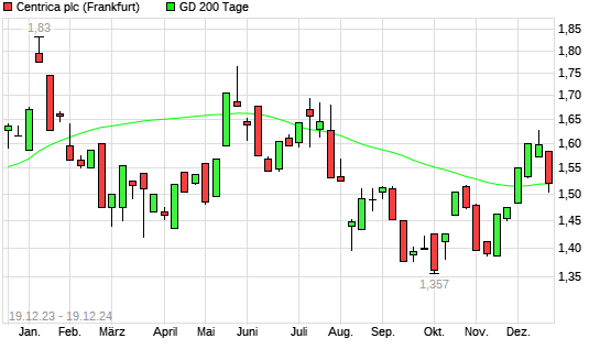 Mit dem Anstieg auf 1,53 EUR hat die Centrica-Aktie am 18.12.2024 die 200-Tage-Linie nach oben gekreuzt.