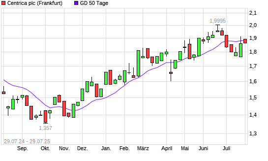 Mit dem Anstieg auf 1,89 EUR hat die Centrica-Aktie am 28.07.2025 die 50-Tage-Linie nach oben gekreuzt.