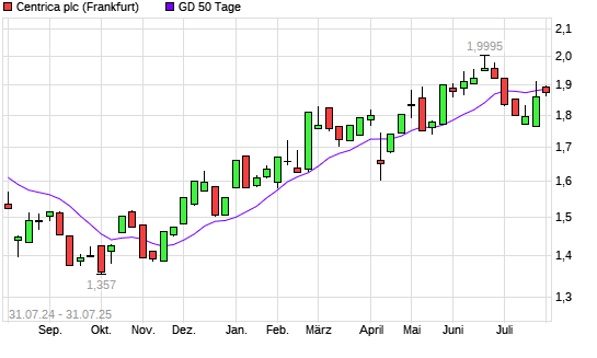 Mit dem Anstieg auf 1,90 EUR hat die Centrica-Aktie am 30.07.2025 die 50-Tage-Linie nach oben gekreuzt.