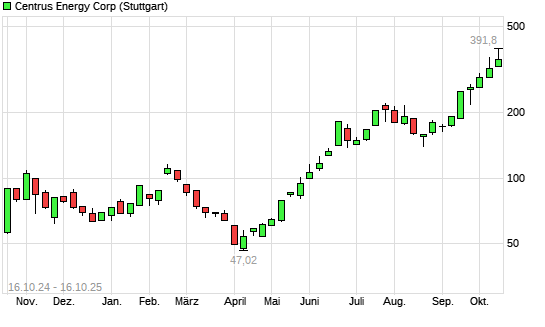 Mit dem Anstieg auf 385,20 EUR hat die Centrus Energy-Aktie (ISIN US15643U1043) am 15.10.2025 ein neues 10-Jahres-Hoch erreicht und damit den Kurs vom 13.10.2025 eingestellt.