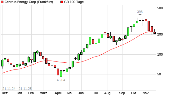 Mit dem Anstieg auf 237,40 EUR hat die Centrus Energy-Aktie am 20.11.2025 die 100-Tage-Linie nach oben gekreuzt.