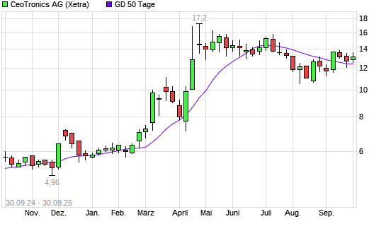 Mit dem Anstieg auf 12,50 EUR hat die CeoTronics-Aktie am 29.09.2025 die 50-Tage-Linie nach oben gekreuzt.