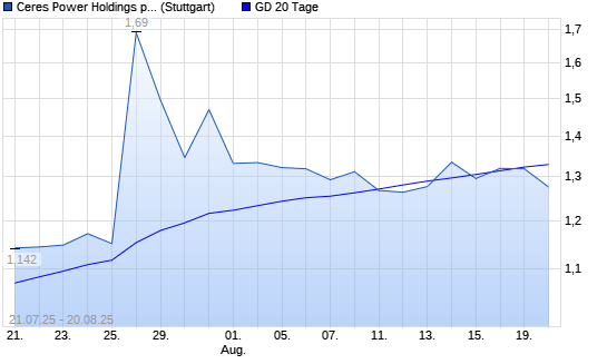 Mit dem Anstieg auf 1,31 EUR hat die Ceres Power-Aktie am 19.08.2025 die 20-Tage-Linie nach oben gekreuzt.