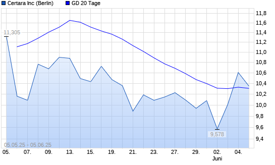 Mit dem Anstieg auf 10,23 EUR hat die Certara-Aktie am 04.06.2025 die 20-Tage-Linie nach oben gekreuzt.