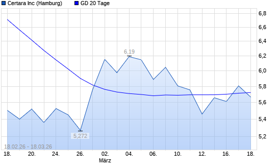 Mit dem Anstieg auf 5,81 EUR hat die Certara-Aktie am 17.03.2026 die 20-Tage-Linie nach oben gekreuzt.