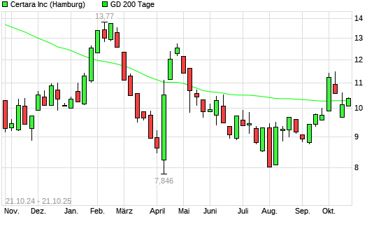 Mit dem Anstieg auf 10,41 EUR hat die Certara-Aktie am 20.10.2025 die 200-Tage-Linie nach oben gekreuzt.