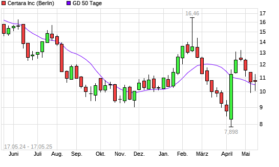 Mit dem Anstieg auf 10,43 EUR hat die Certara-Aktie am 16.05.2025 die 50-Tage-Linie nach oben gekreuzt.