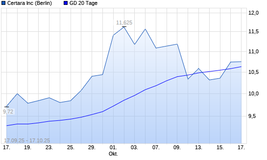 Mit dem Anstieg auf 10,60 EUR hat die Certara-Aktie am 16.10.2025 die 20-Tage-Linie nach oben gekreuzt.Die Certara-Aktie befindet sich seit dem 15.10.2025 im langfristigen Aufwärtstrend und ...weiterlesen