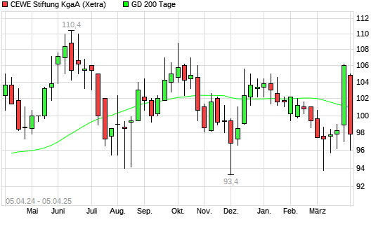 Mit dem Rücksetzer auf 98,00 EUR hat die Cewe Stiftung-Aktie am 04.04.2025 die 200-Tage-Linie nach unten gekreuzt.