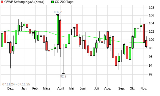 Mit dem Rücksetzer auf 99,10 EUR hat die Cewe Stiftung-Aktie am 06.11.2025 die 200-Tage-Linie nach unten gekreuzt.