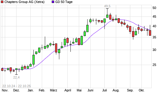 Mit dem Anstieg auf 38,70 EUR hat die Chapters Group-Aktie am 21.10.2025 die 50-Tage-Linie nach oben gekreuzt.