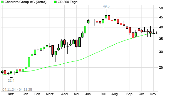 Mit dem Rücksetzer auf 36,80 EUR hat die Chapters Group-Aktie am 03.11.2025 die 200-Tage-Linie nach unten gekreuzt.