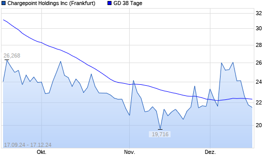 Mit dem Rücksetzer auf 1,09 EUR hat die ChargePoint Holdings-Aktie am 16.12.2024 die 38-Tage-Linie nach unten gekreuzt.