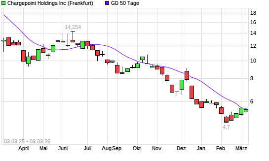 Mit dem Rücksetzer auf 5,30 EUR hat die ChargePoint Holdings-Aktie am 02.03.2026 die 50-Tage-Linie nach unten gekreuzt.
