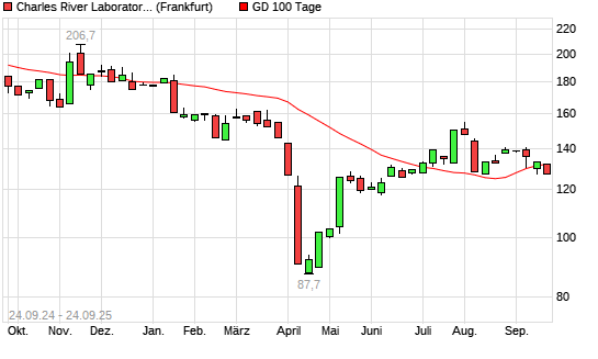 Mit dem Rücksetzer auf 130,00 EUR hat die Charles River Laboratories International-Aktie am 23.09.2025 die 100-Tage-Linie nach unten gekreuzt.