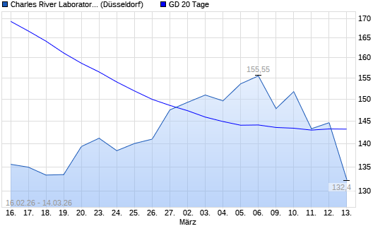 Mit dem Rücksetzer auf 132,15 EUR hat die Charles River Laboratories International-Aktie am 13.03.2026 die 20-Tage-Linie nach unten gekreuzt.