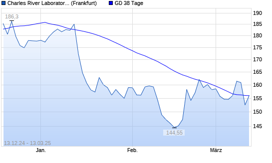Mit dem Rücksetzer auf 152,55 EUR hat die Charles River Laboratories International-Aktie am 12.03.2025 die 38-Tage-Linie nach unten gekreuzt.