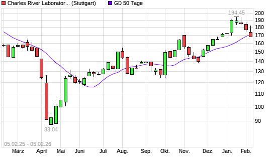 Mit dem Rücksetzer auf 170,05 EUR hat die Charles River Laboratories International-Aktie am 04.02.2026 die 50-Tage-Linie nach unten gekreuzt.