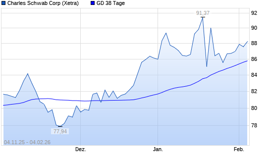 Mit dem Anstieg auf 88,85 EUR hat die Charles Schwab-Aktie am 03.02.2026 die 38-Tage-Linie nach oben gekreuzt.