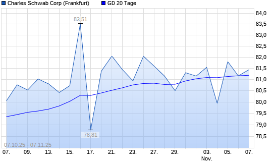 Mit dem Rücksetzer auf 81,16 EUR hat die Charles Schwab-Aktie am 06.11.2025 die 20-Tage-Linie nach unten gekreuzt.