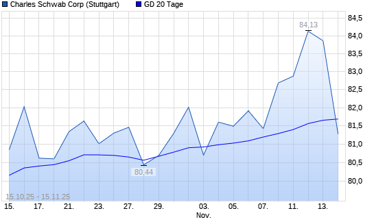 Mit dem Rücksetzer auf 81,21 EUR hat die Charles Schwab-Aktie am 14.11.2025 die 20-Tage-Linie nach unten gekreuzt.