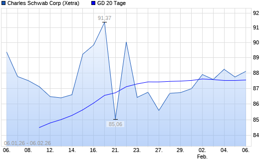 Mit dem Rücksetzer auf 86,98 EUR hat die Charles Schwab-Aktie am 05.02.2026 die 20-Tage-Linie nach unten gekreuzt.
