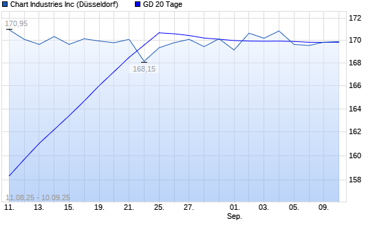 Mit dem Rücksetzer auf 168,45 EUR hat die Chart Industries-Aktie am 09.09.2025 die 20-Tage-Linie nach unten gekreuzt.