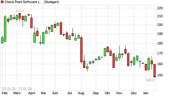 Mit dem Rücksetzer auf 152,25 EUR hat die Check Point Software-Aktie (ISIN IL0010824113) am 20.01.2026 ein neues 12-Monats-Tief erreicht und damit den Kurs vom 02.01.2026 eingestellt.