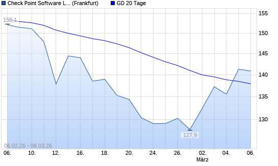 Mit dem Anstieg auf 141,35 EUR hat die Check Point Software-Aktie am 05.03.2026 die 20-Tage-Linie nach oben gekreuzt.