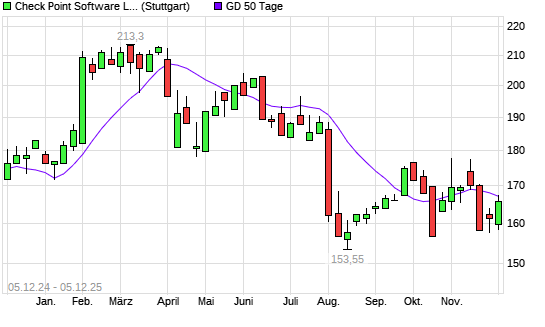 Mit dem Anstieg auf 167,65 EUR hat die Check Point Software-Aktie am 04.12.2025 die 50-Tage-Linie nach oben gekreuzt.
