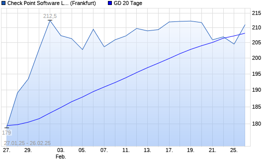 Mit dem Rücksetzer auf 204,60 EUR hat die Check Point Software-Aktie am 25.02.2025 die 20-Tage-Linie nach unten gekreuzt.