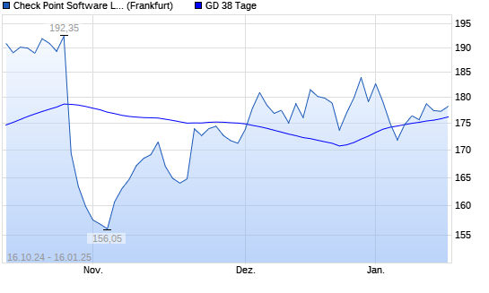 Mit dem Rücksetzer auf 177,30 EUR hat die Check Point Software-Aktie am 15.01.2025 die 38-Tage-Linie nach unten gekreuzt.