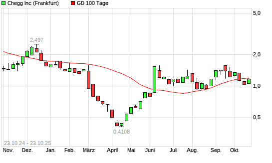 Mit dem Anstieg auf 1,18 EUR hat die Chegg-Aktie am 22.10.2025 die 100-Tage-Linie nach oben gekreuzt.