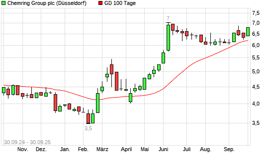 Mit dem Anstieg auf 6,80 EUR hat die Chemring Group-Aktie am 29.09.2025 die 100-Tage-Linie nach oben gekreuzt.