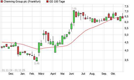 Mit dem Rücksetzer auf 6,35 EUR hat die Chemring Group-Aktie am 31.10.2025 die 100-Tage-Linie nach unten gekreuzt.