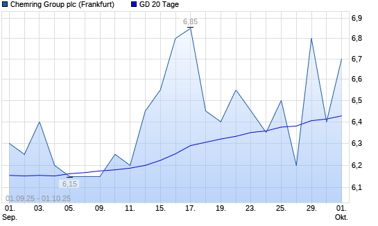Mit dem Rücksetzer auf 6,40 EUR hat die Chemring Group-Aktie am 30.09.2025 die 20-Tage-Linie nach unten gekreuzt.