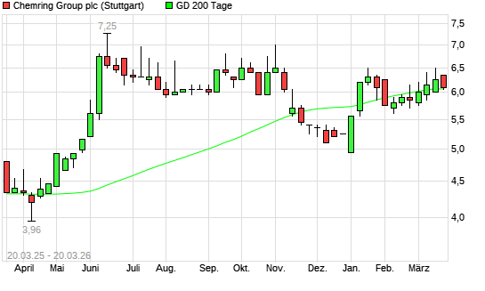 Mit dem Rücksetzer auf 6,05 EUR hat die Chemring Group-Aktie am 19.03.2026 die 200-Tage-Linie nach unten gekreuzt.