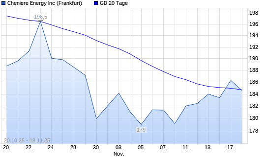 Mit dem Anstieg auf 186,30 EUR hat die Cheniere Energy-Aktie am 17.11.2025 die 20-Tage-Linie nach oben gekreuzt.