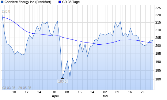 Mit dem Anstieg auf 203,70 EUR hat die Cheniere Energy-Aktie am 28.05.2025 die 38-Tage-Linie nach oben gekreuzt.