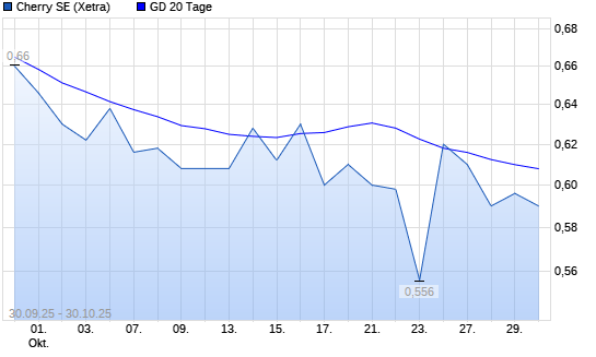 Mit dem Rücksetzer auf 0,58 EUR hat die Cherry-Aktie am 29.10.2025 die 20-Tage-Linie nach unten gekreuzt.
