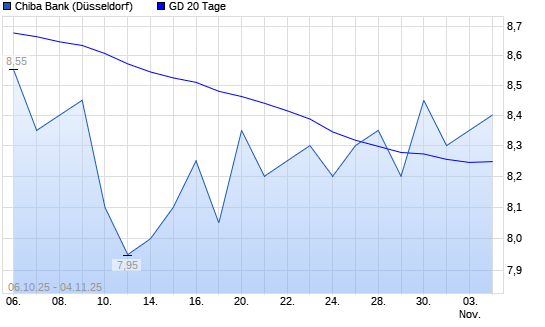 Mit dem Anstieg auf 8,35 EUR hat die Chiba Bank-Aktie am 03.11.2025 die 20-Tage-Linie nach oben gekreuzt.