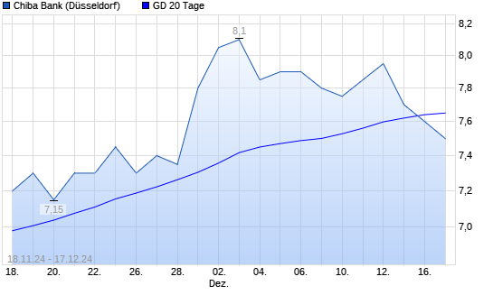 Mit dem Rücksetzer auf 7,70 EUR hat die Chiba Bank-Aktie am 16.12.2024 die 20-Tage-Linie nach unten gekreuzt.