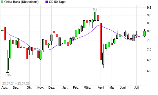 Mit dem Rücksetzer auf 7,75 EUR hat die Chiba Bank-Aktie am 22.07.2025 die 50-Tage-Linie nach unten gekreuzt.