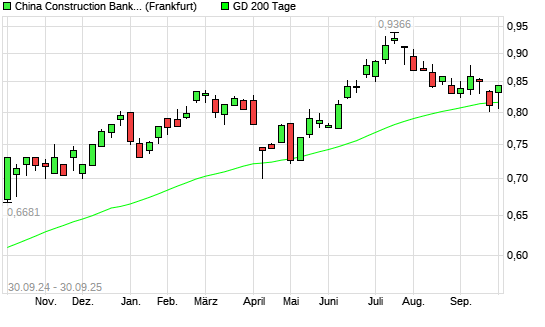 Mit dem Anstieg auf 0,83 EUR hat die China Construction Bank-Aktie am 29.09.2025 die 200-Tage-Linie nach oben gekreuzt.